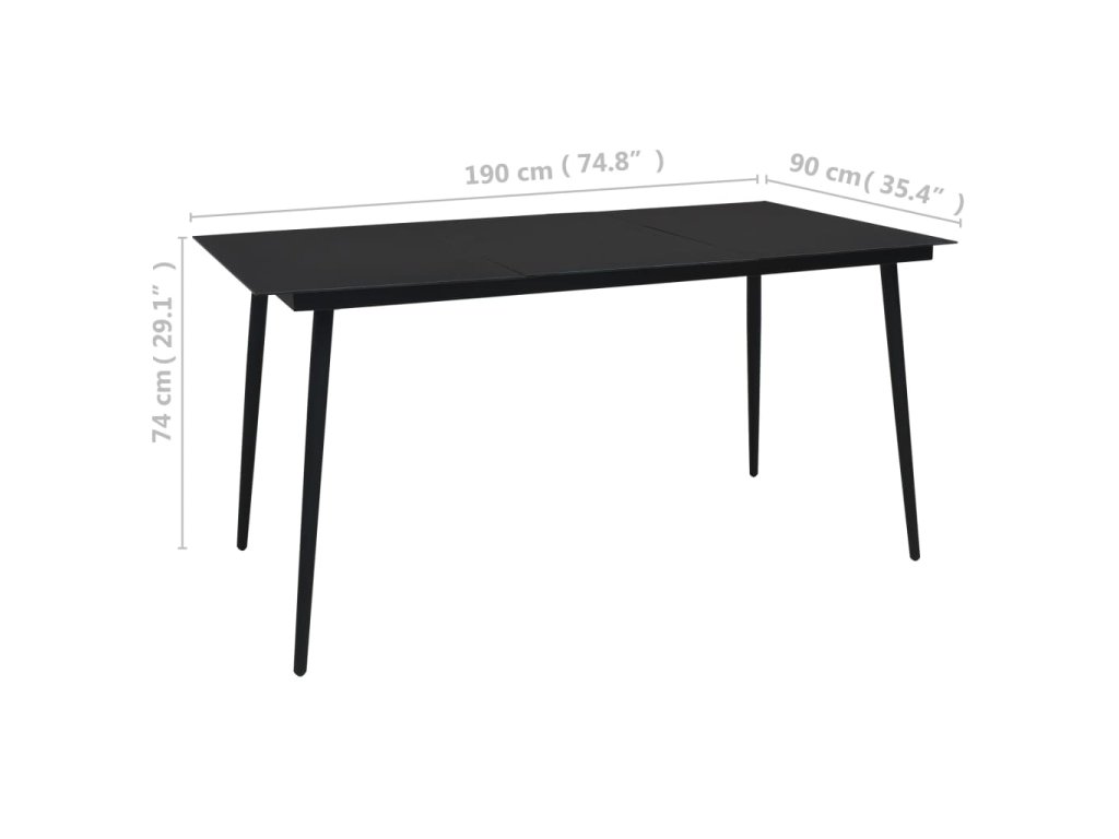 Zahradní jídelní stůl černý 190 x 90 x 74 cm ocel a sklo 312159