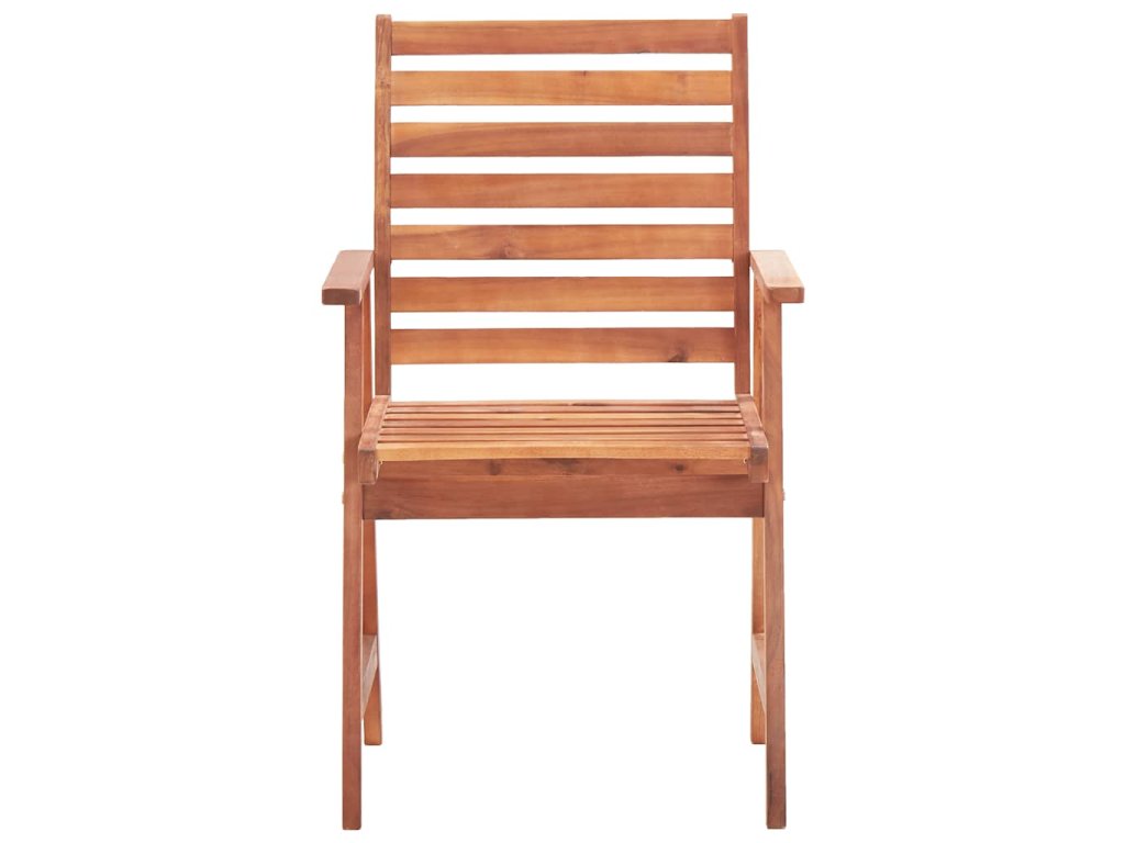 Zahradní židle jsou vyrobené z masivní akácie, tropického tvrdého dřeva, které je odolné vůči povětrnostním vlivům a vydrží vám sloužit po mnoho let. Olejem napuštěný povrch se snadno čistí vlhkým hadříkem. Laťkový design vnese do každého prostoru rustikální kouzlo. Pro ještě větší pohodlí obdržíte spolu s židlemi také podušky. Jsou vyrobené ze 100% polyesteru s voděodolnou povrchovou úpravou a každá z nich je opatřená dvěma páry šňůrek, kterými je můžete pevně přivázat k židli.