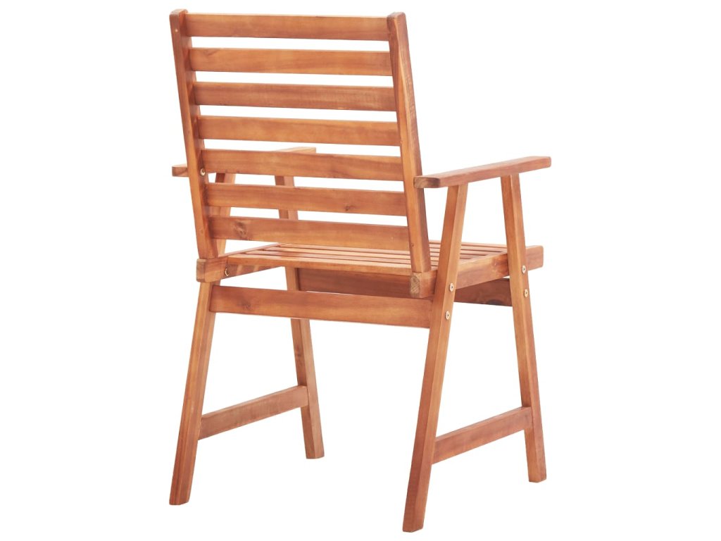 Jídelní židle jsou vyrobené z prvotřídního akáciového dřeva, tvrdé tropické dřeviny, která je oceňovaná pro svou odolnost vůči rozmarům počasí. Vydrží vám tedy sloužit po dlouhá léta. Olejem ošetřený povrch snadno očistíte vlhkým hadříkem. Laťkový design vyzařuje rustikální šarm.