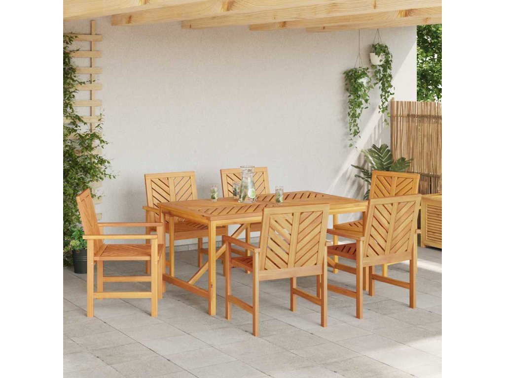 Prémiová konstrukce z akácie: Tato venkovní jídelní židle je vyrobena zcela z masivního akáciového dřeva, známého svou trvanlivostí a odolností vůči povětrnostním vlivům. Hustota akácie a její odolnost vůči škůdcům ji činí ideální volbou pro venkovní nábytek, zajišťující dlouhou životnost a udržení krásného vzhledu v průběhu času. Zrnitá textura a teplé hnědé odstíny dodávají dotek rustikální elegance.,Ergonomický design: S obdélníkovým tvarem a pohodlnými opěrkami na ruce a opěrkou zad je tato židle navržena tak, aby poskytovala podporu a relaxaci během delšího sezení. Její přirozená zrnitá textura doplňuje ergonomický design, který je dokonalý pro neformální i formální venkovní stolování.,Pečlivě zpracovaný rám a nohy: Robustní rám a nohy poskytují vynikající stabilitu. Vyrobené z masivního akáciového dřeva, tyto části zajišťují, že židle zůstává pevná a spolehlivá během používání. Hnědý povrch dodává teplo jakémukoli prostředí, zlepšuje celkovou estetiku a harmonizuje s přírodními okolnostmi.,Nízké požadavky na údržbu: Aby se zajistila dlouhá životnost, tato židle obsahuje jednoduché pokyny pro údržbu. Jednoduše zakryjte židli, když se nepoužívá, abyste si uchovali vzhled a chránili ji před nepříznivými povětrnostními podmínkami, což přispívá k jejímu prodlouženému životu.,Univerzální použití: Ideální pro různé venkovní prostory, od zahrad po terasy, tato židle se hodí do různých prostředí. Její rustikální styl harmonizuje jak s moderními, tak tradičními krajinami, vytváří souvislý vzhled v jakékoli venkovní oblasti.- Barva: Hnědá