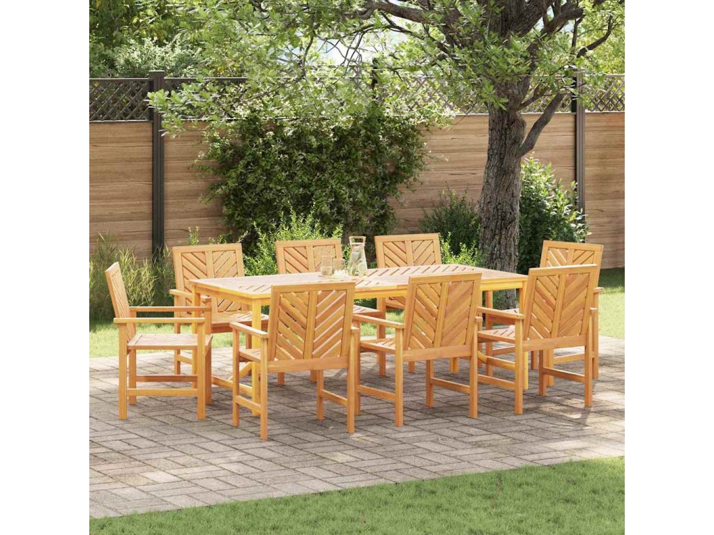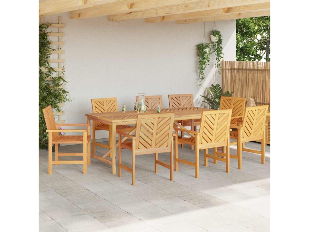 Prémiová konstrukce z akácie: Tato venkovní jídelní židle je vyrobena zcela z masivního akáciového dřeva, známého svou trvanlivostí a odolností vůči povětrnostním vlivům. Hustota akácie a její odolnost vůči škůdcům ji činí ideální volbou pro venkovní nábytek, zajišťující dlouhou životnost a udržení krásného vzhledu v průběhu času. Zrnitá textura a teplé hnědé odstíny dodávají dotek rustikální elegance.,Ergonomický design: S obdélníkovým tvarem a pohodlnými opěrkami na ruce a opěrkou zad je tato židle navržena tak, aby poskytovala podporu a relaxaci během delšího sezení. Její přirozená zrnitá textura doplňuje ergonomický design, který je dokonalý pro neformální i formální venkovní stolování.,Pečlivě zpracovaný rám a nohy: Robustní rám a nohy poskytují vynikající stabilitu. Vyrobené z masivního akáciového dřeva, tyto části zajišťují, že židle zůstává pevná a spolehlivá během používání. Hnědý povrch dodává teplo jakémukoli prostředí, zlepšuje celkovou estetiku a harmonizuje s přírodními okolnostmi.,Nízké požadavky na údržbu: Aby se zajistila dlouhá životnost, tato židle obsahuje jednoduché pokyny pro údržbu. Jednoduše zakryjte židli, když se nepoužívá, abyste si uchovali vzhled a chránili ji před nepříznivými povětrnostními podmínkami, což přispívá k jejímu prodlouženému životu.,Univerzální použití: Ideální pro různé venkovní prostory, od zahrad po terasy, tato židle se hodí do různých prostředí. Její rustikální styl harmonizuje jak s moderními, tak tradičními krajinami, vytváří souvislý vzhled v jakékoli venkovní oblasti.- Barva: Hnědá