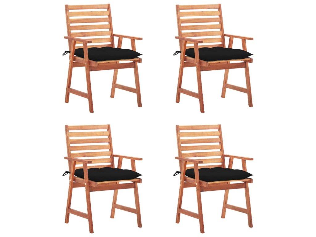 Tato moderní sada dřevěných jídelních židlí s poduškami dodá vaší zahradě, terase či dvorku nádech přírodního stylu. Představuje skvělou volbu pro stolování na čerstvém vzduchu.