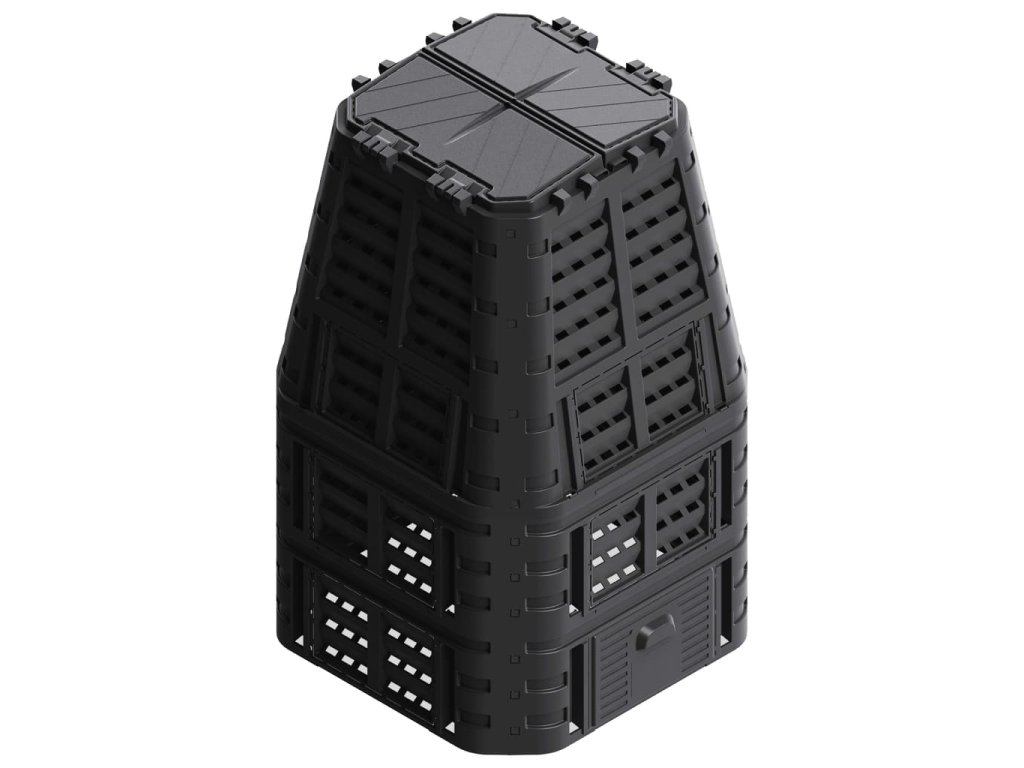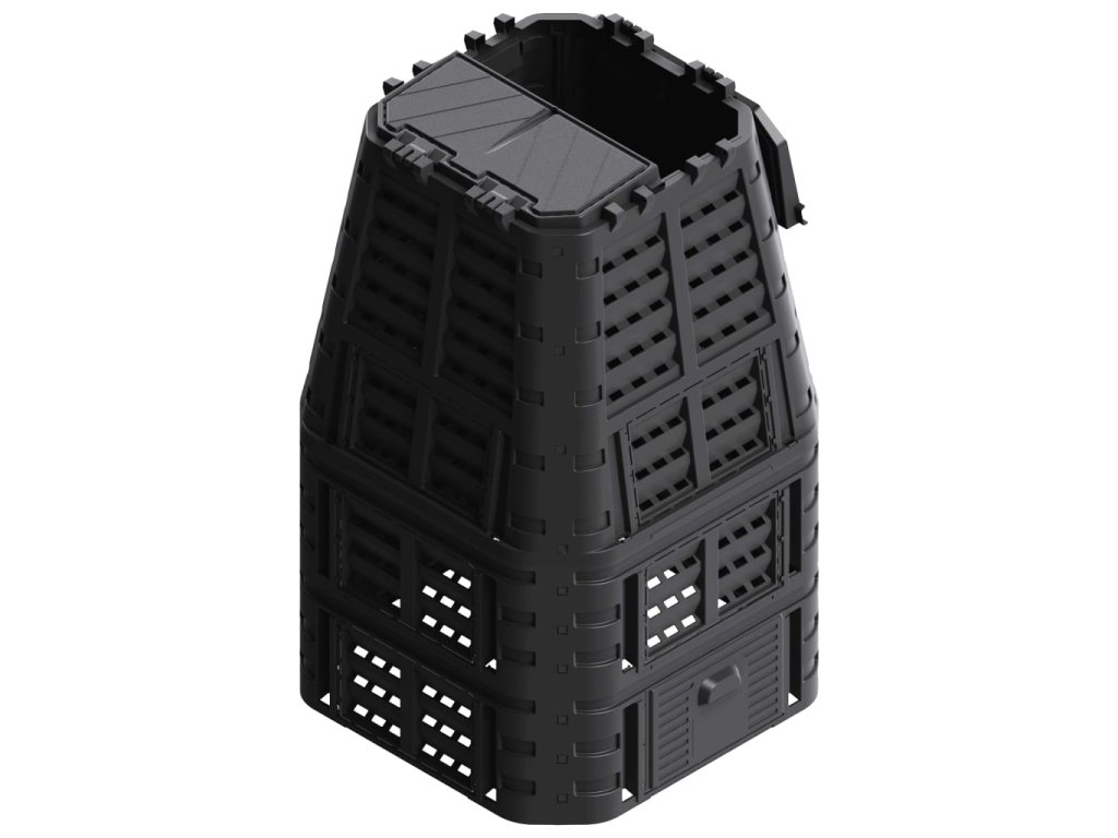Vysoká teplota, která vzniká uvnitř kompostéru, urychluje bakteriální rozklad a vytváří lepší humus. Kontejner má kompaktní design, takže nezabírá příliš místa, ale zároveň nabízí mohutný vnitřní objem. Horní víka umožňují snadné plnění shora, zatímco vyklápěcí dvířka ve spodní části naopak zajišťují jednoduché vytahování humusu. Kapkový zavlažovací systém, otvor na visací zámek, pevné postranní západky, odolné panty vík, praktická rukojeť a velká posuvná dvířka s šikovnými úchytkami navíc přispívají k velmi pohodlnému používání.