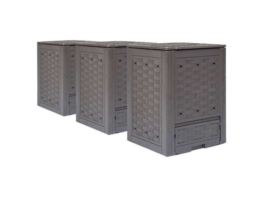 Zahradní kompostéry 3 ks hnědé 60x60x83 cm 900 l plast ratan 278918
