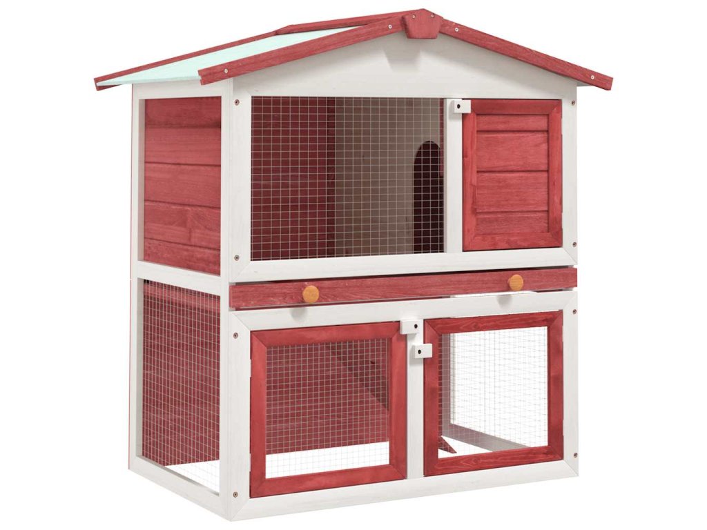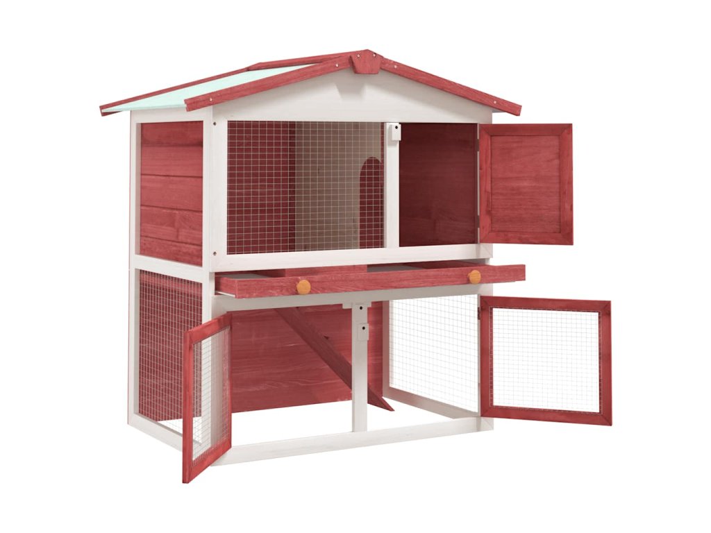 Zahradní králíkárna 3 dvířka červená dřevěná 170839