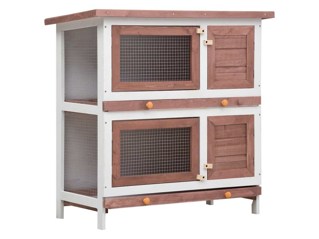 Tato kvalitní dvoupatrová králíkárna poskytuje velké útulné místo pro chov malých zvířat, zejména roztomilých králíčků. Má několik způsobů využití: hraní, pohyb, trénink nebo bezpečný pobyt vašich zvířat.