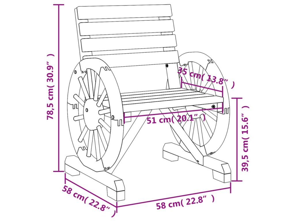 - Atraktivní design: Područky zahradního sezení mají design kola od vozu, který zaujme z jakéhokoli úhlu.