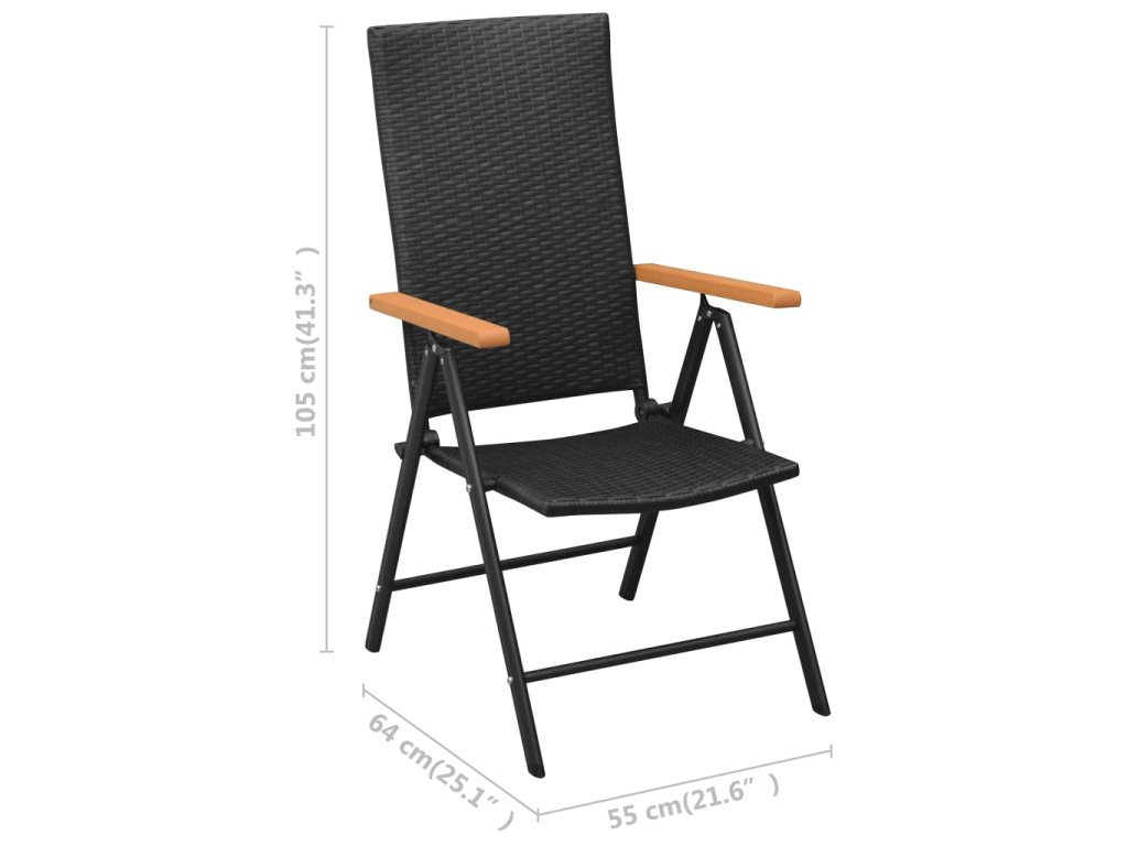 Židle jsou vyrobené z PE ratanu, který má dlouhou životnost a skvěle odolává rozmarům počasí. Hliníkový rám s práškovým nástřikem jim dodává stabilitu. Hnědé područky z WPC židlím přinášejí stylový vzhled. Opěradla židlí se dají nastavit do 7 pozic, takže si vždy můžete udělat pohodlí. Židle se dají složit, aby zbytečně nezabíraly místo, když je právě nepoužíváte.