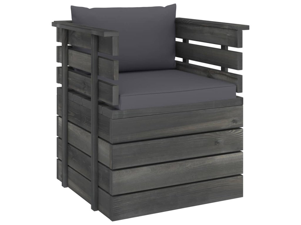 V tomto módním zahradním křesle s poduškami se vám bude skvěle relaxovat na čerstvém vzduchu nebo si povídat s rodinou a přáteli. Tato dřevěná židle má nadčasový design z palet, který na vaši terasu, zahradu nebo do obývacího pokoje vnese rustikální šarm.