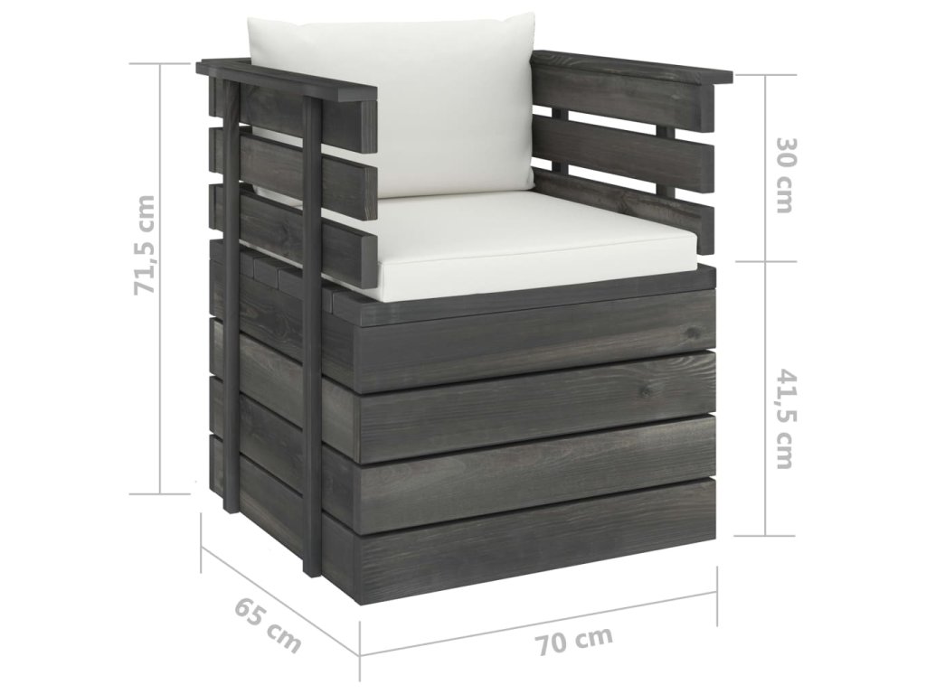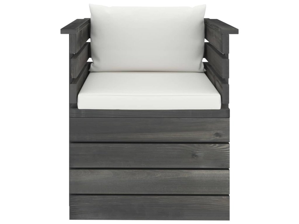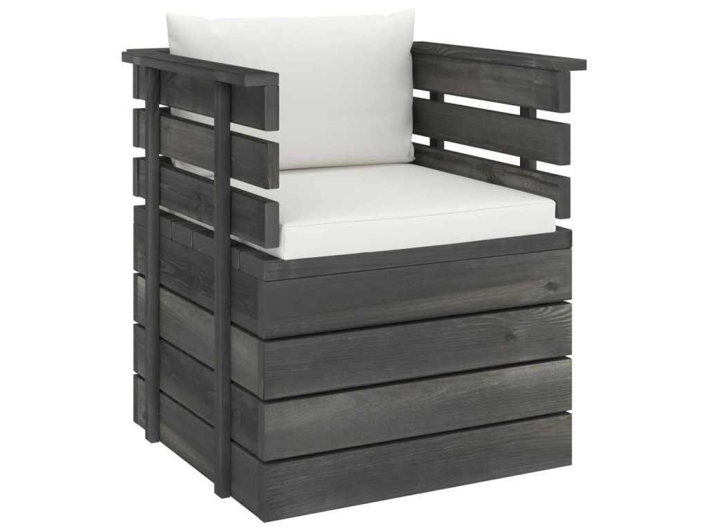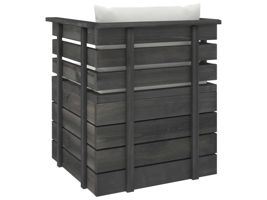 V tomto módním zahradním křesle s poduškami se vám bude skvěle relaxovat na čerstvém vzduchu nebo si povídat s rodinou a přáteli. Tato dřevěná židle má nadčasový design z palet, který na vaši terasu, zahradu nebo do obývacího pokoje vnese rustikální šarm.