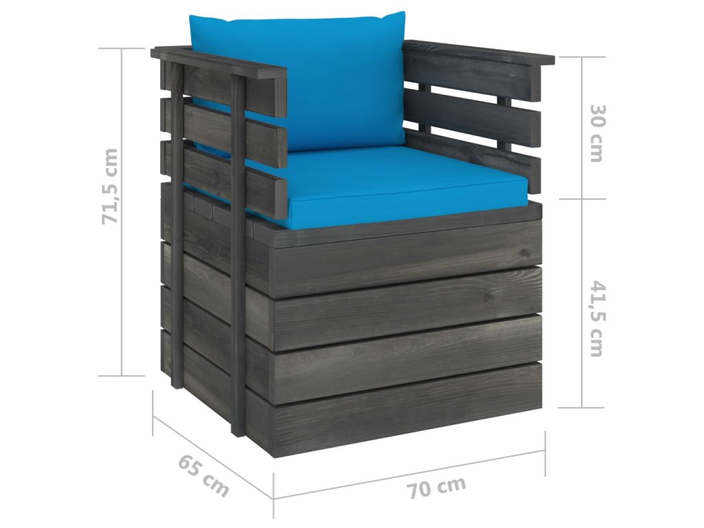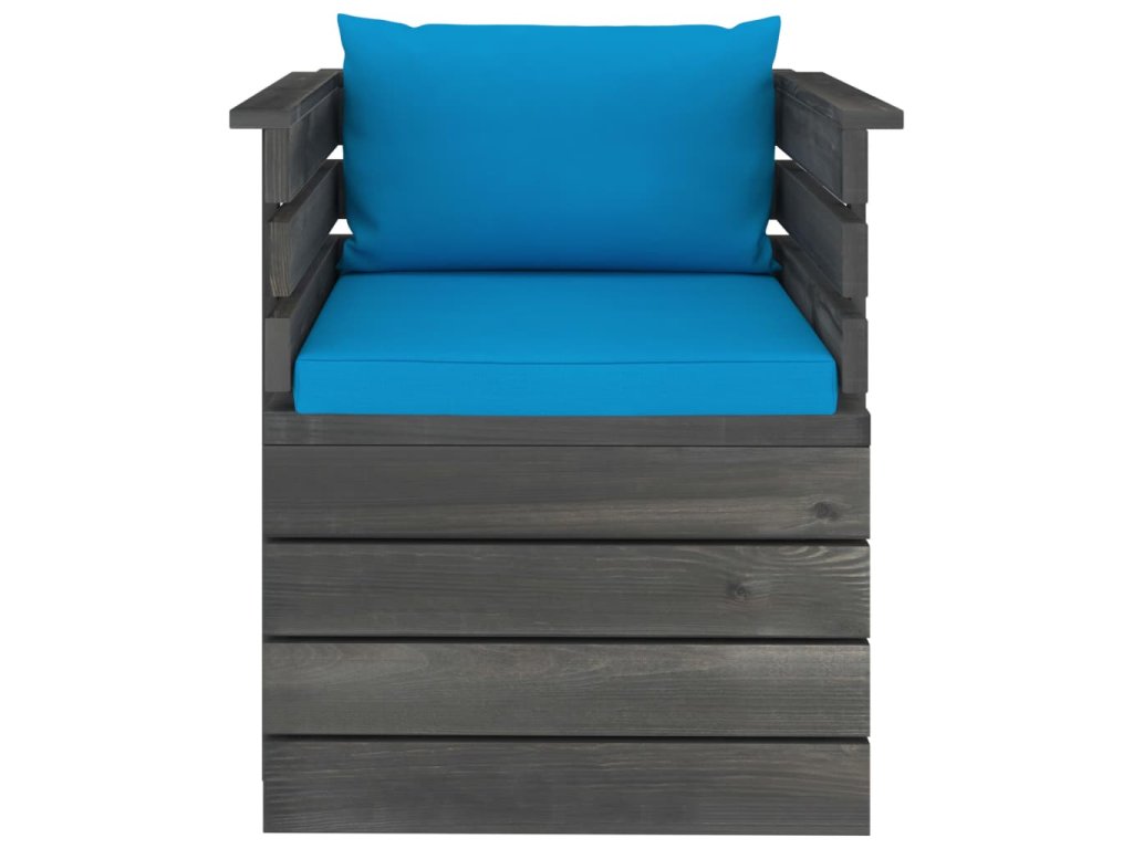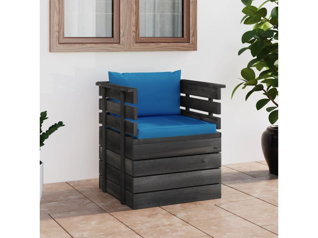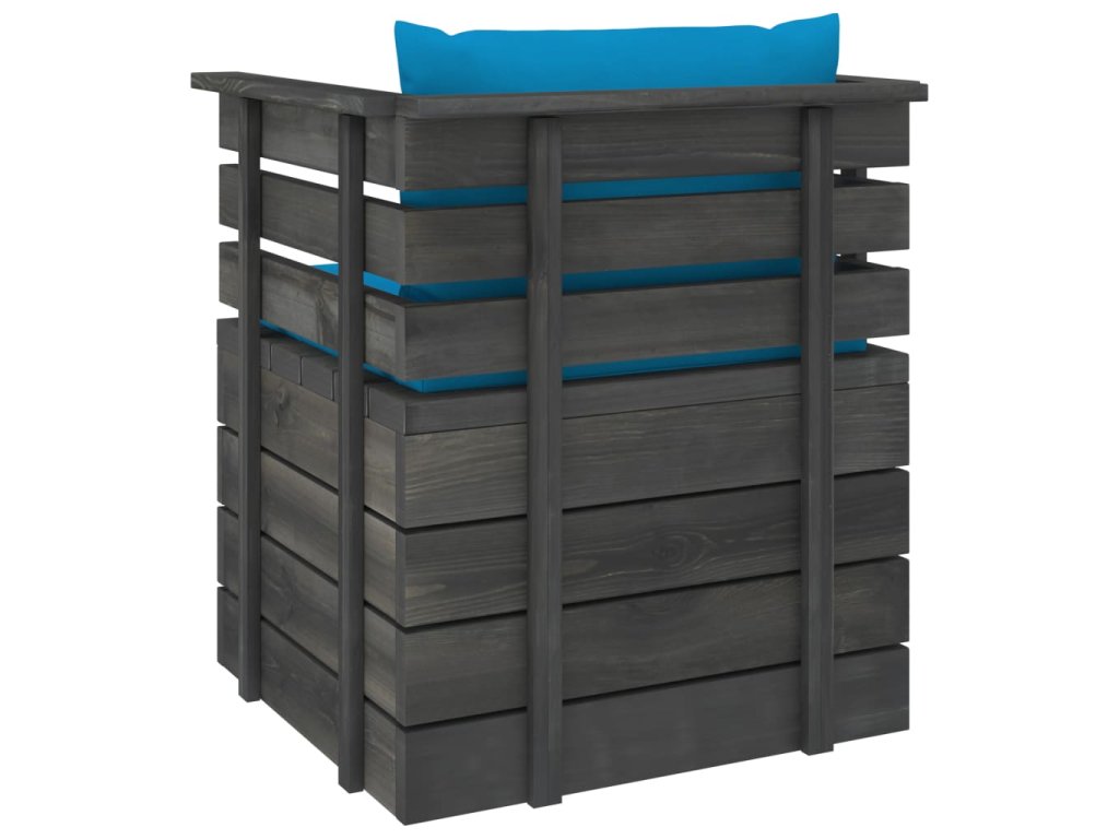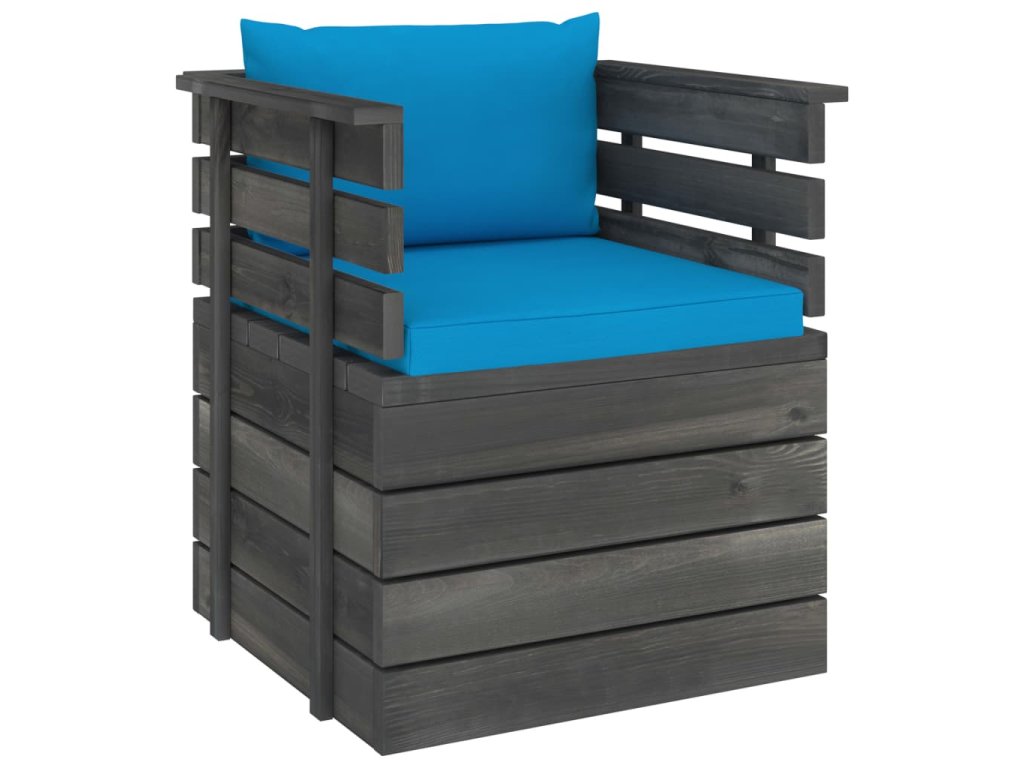 V tomto módním zahradním křesle s poduškami se vám bude skvěle relaxovat na čerstvém vzduchu nebo si povídat s rodinou a přáteli. Tato dřevěná židle má nadčasový design z palet, který na vaši terasu, zahradu nebo do obývacího pokoje vnese rustikální šarm.