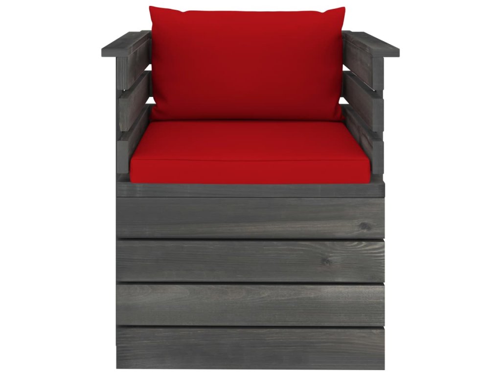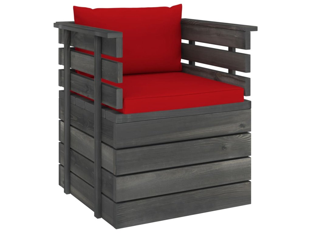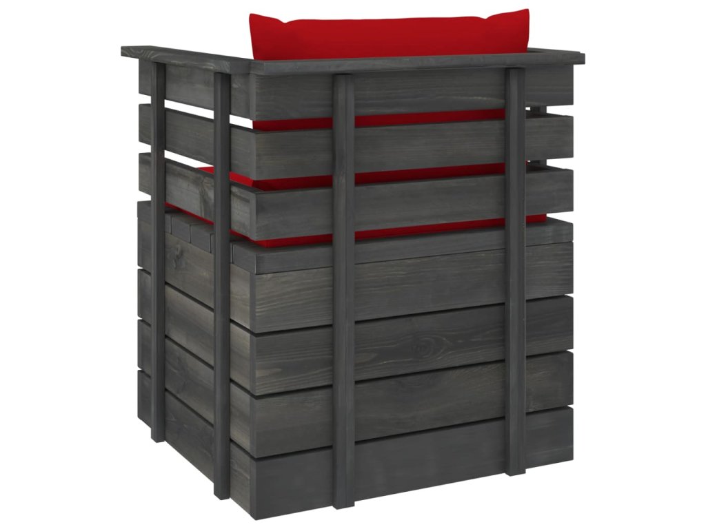 V tomto módním zahradním křesle s poduškami se vám bude skvěle relaxovat na čerstvém vzduchu nebo si povídat s rodinou a přáteli. Tato dřevěná židle má nadčasový design z palet, který na vaši terasu, zahradu nebo do obývacího pokoje vnese rustikální šarm.