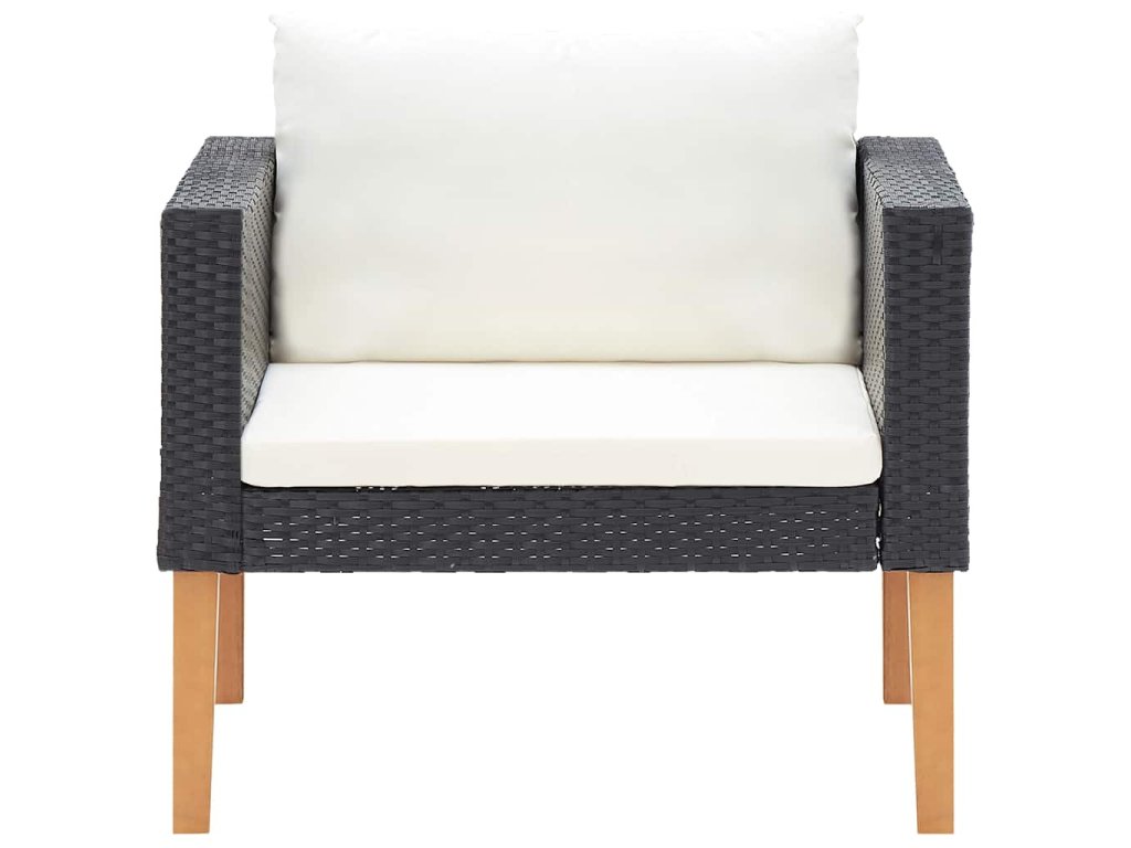 - Materiál: PE ratan, práškově lakovaná ocel, textil (100% polyester), eukalyptus s povrchem, který vypadá jako teak