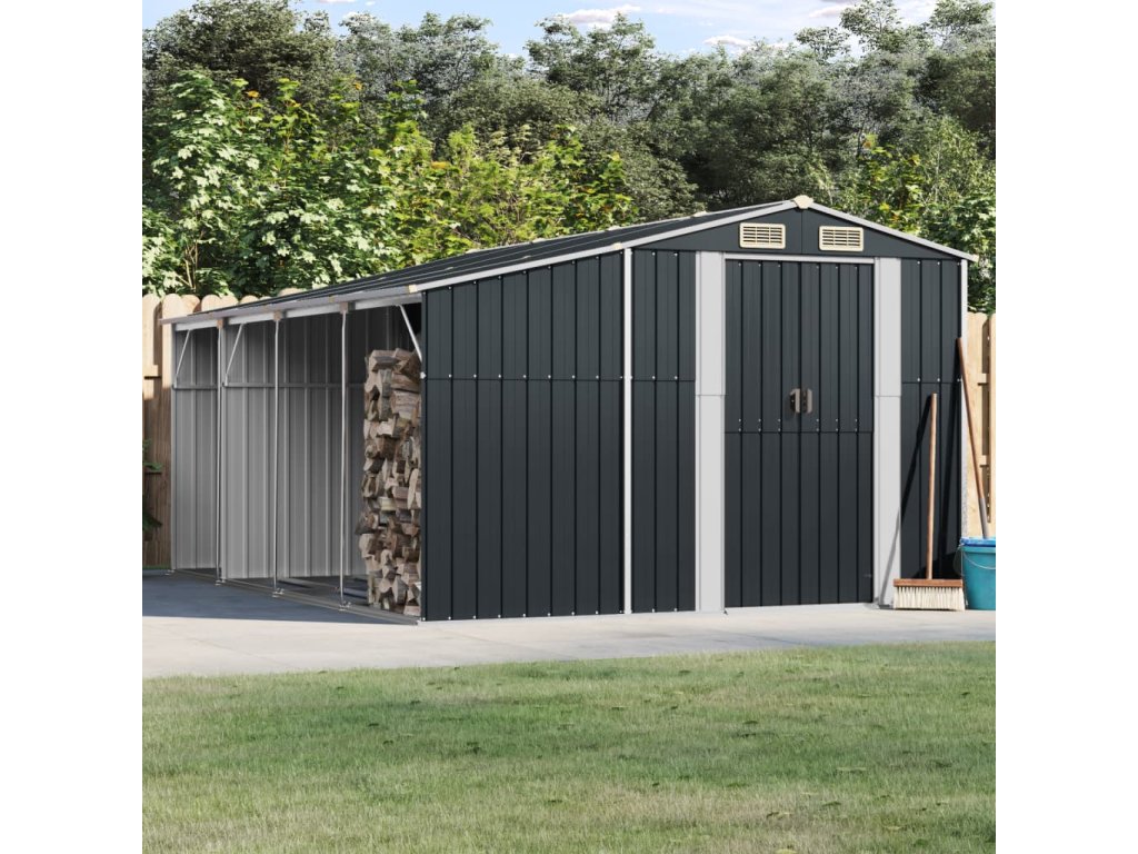 - Dostatek úložného prostoru: Tato kovová kůlna se stojanem na palivové dříví poskytuje dostatek prostoru pro uložení palivového dříví, zahradního nářadí, nábytku, vybavení a dalších věcí.