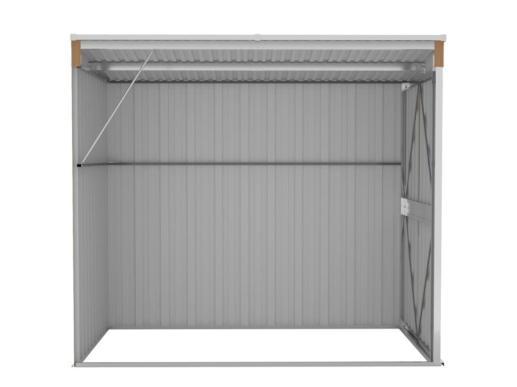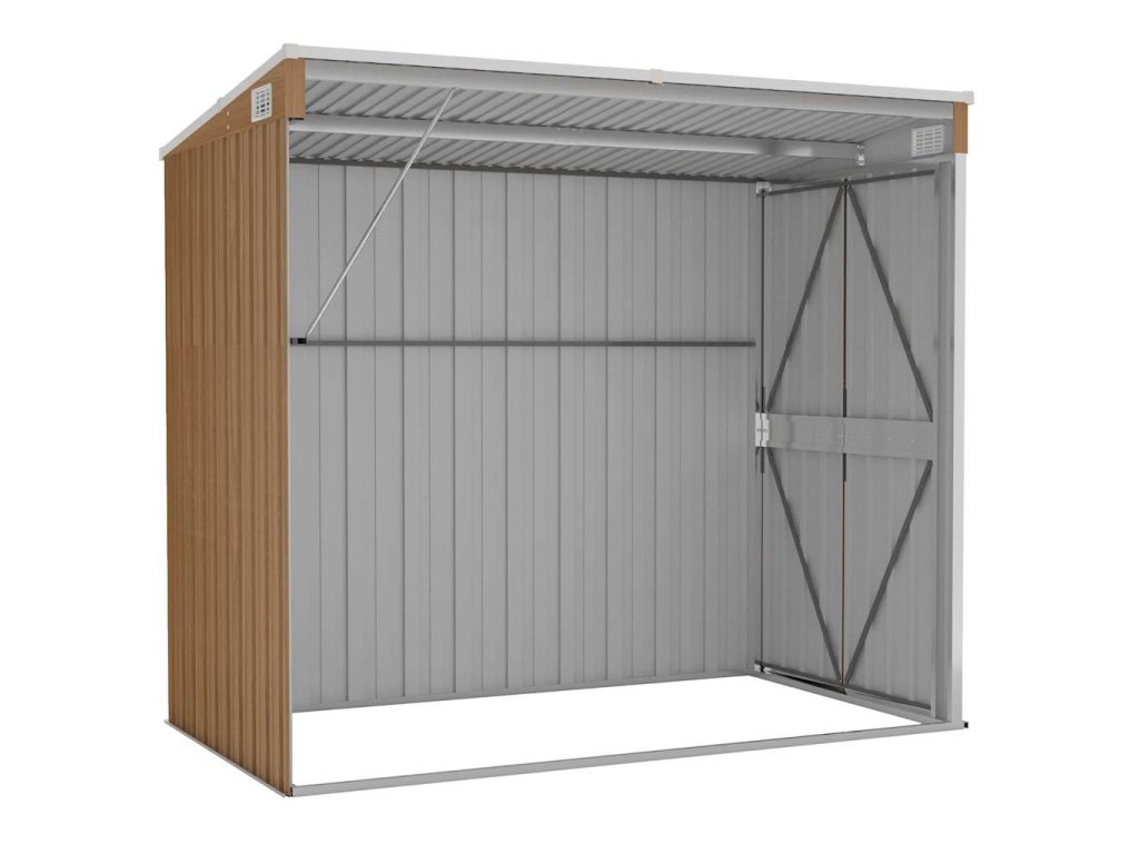 - Dostatek úložného prostoru: Tento kovový domek nabízí dostatek prostoru pro uložení palivového dřeva, zahradního nářadí, nábytku, vybavení a dalších věcí. Má také prodlouženou střechu pro uložení palivového dřeva. Střechu lze upevnit na obě strany kůlny.