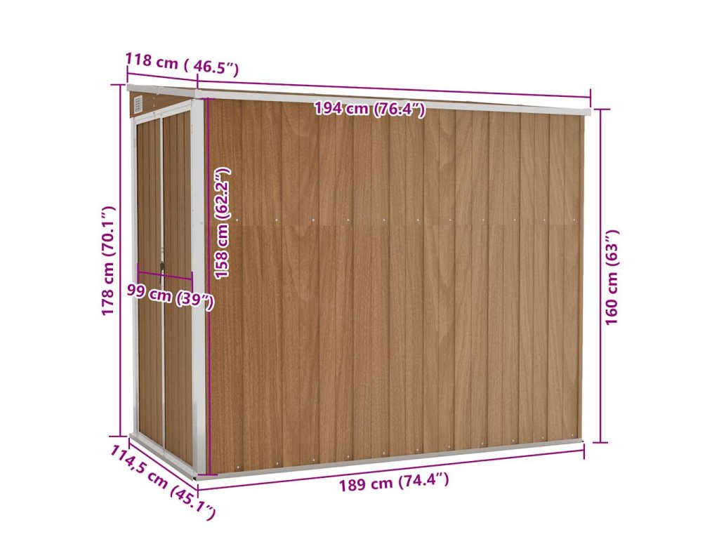 Zahradní kůlna hnědá 118 x 194 x 178 cm pozinkovaná ocel 316224