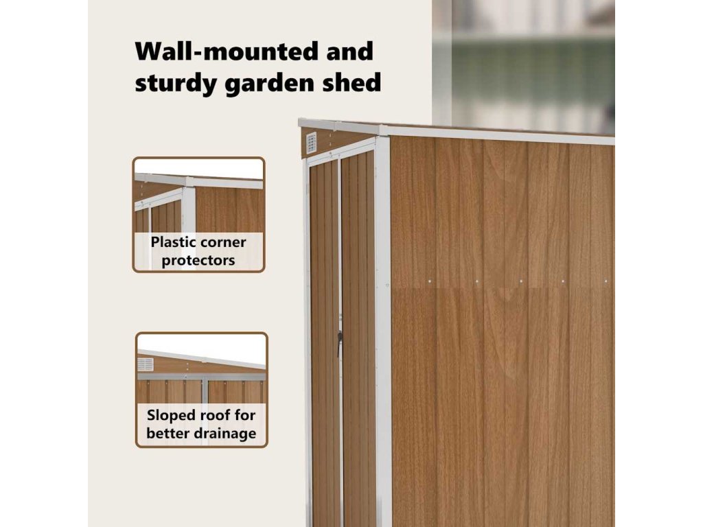 Tento nástěnný zahradní domek s prodlouženou střechou je ideální pro uložení široké škály předmětů, jako je nářadí, zahradní nábytek, zahradní vybavení a další.