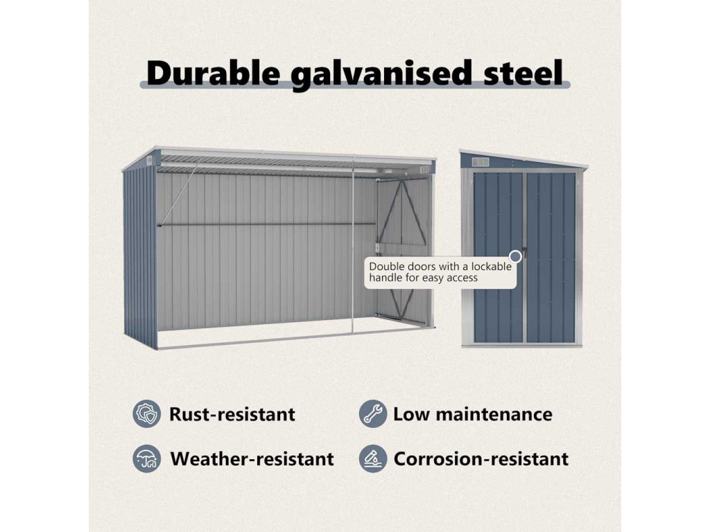 Zahradní kůlna šedá 118 x 288 x 178 cm pozinkovaná ocel 316226