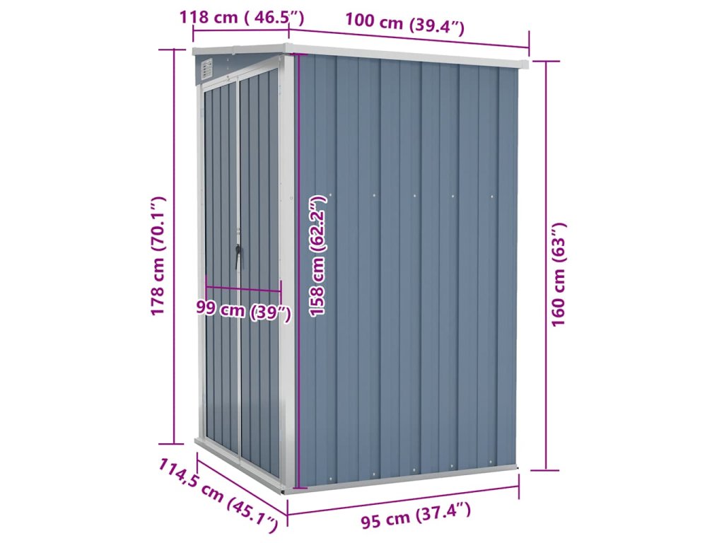 Zahradní kůlna šedá 118x100x178 cm pozinkovaná ocel 316218