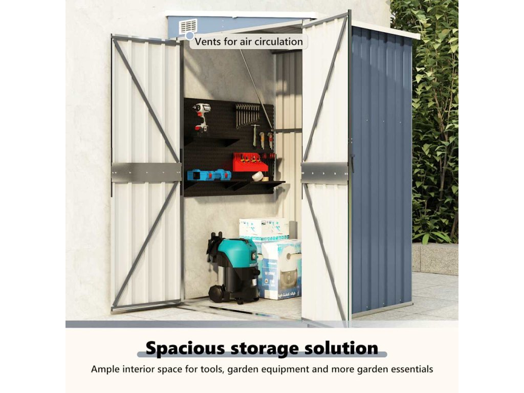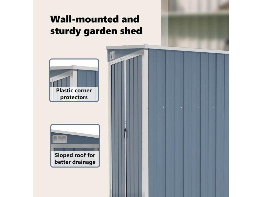 Tento nástěnný zahradní domek je ideální pro uložení různých předmětů, jako je nářadí, zahradní nábytek, zahradní vybavení atd. Domek nabízí ochranu před nečistotami, prachem a také před silným větrem a povětrnostními vlivy.