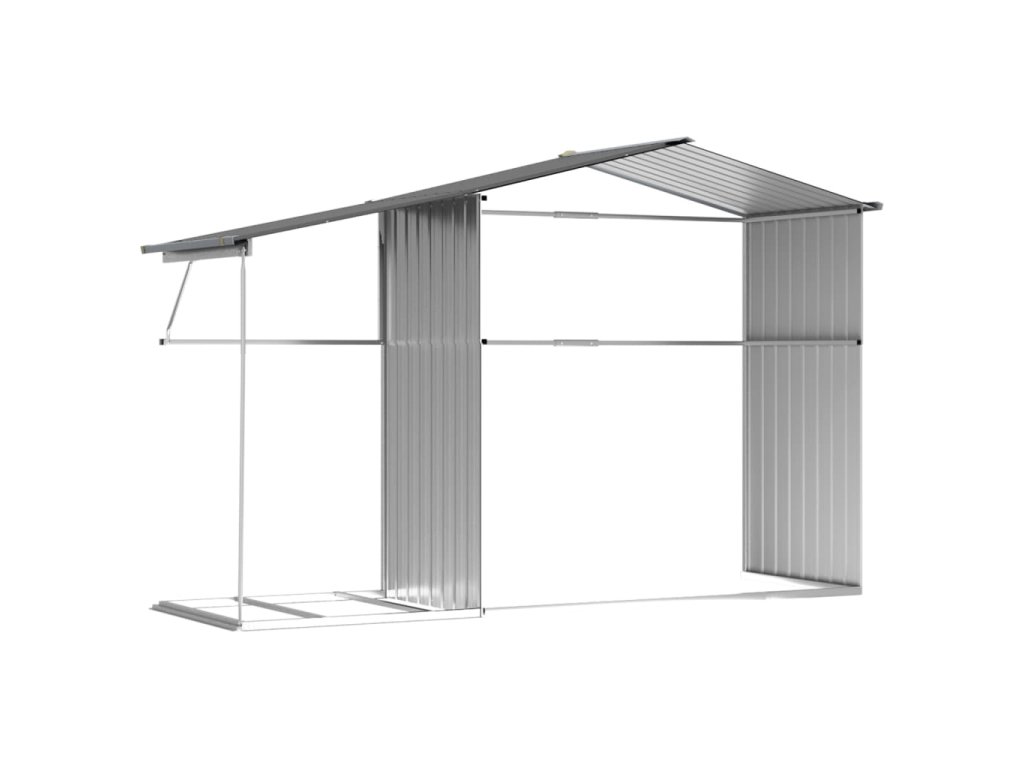 - Dostatek úložného prostoru: Tato kovová kůlna se stojanem na palivové dříví poskytuje dostatek prostoru pro uložení palivového dříví, zahradního nářadí, nábytku, vybavení a dalších věcí.