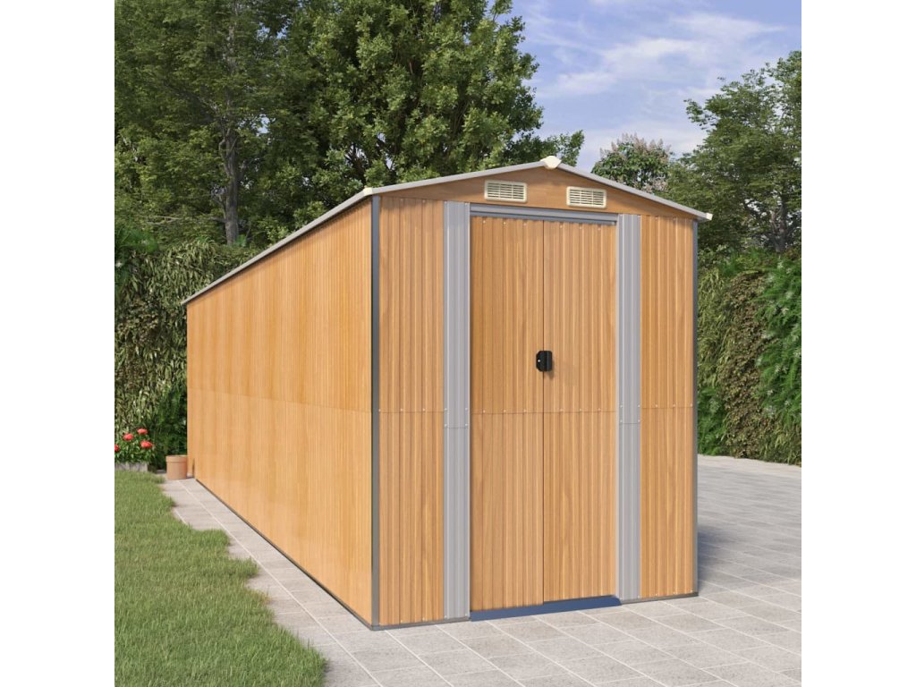 Zahradní kůlna světle hnědá 192x689x223 cm pozinkovaná ocel 3147477