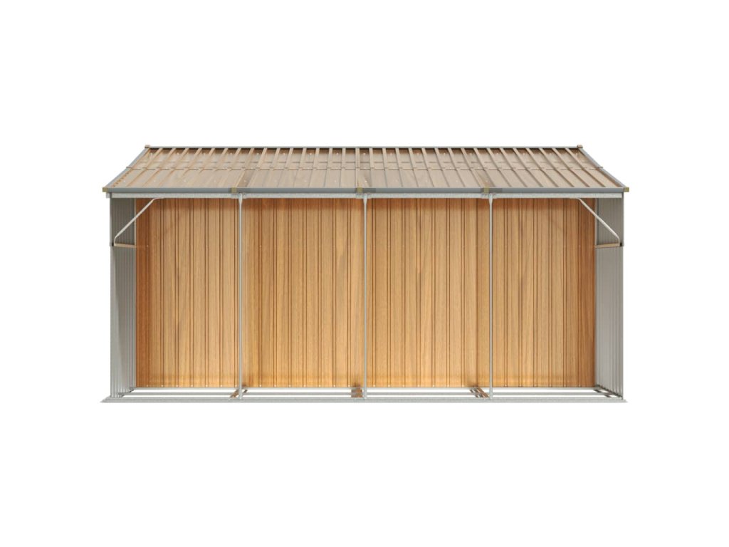 - Dostatek úložného prostoru: Tato kovová kůlna se stojanem na palivové dříví poskytuje dostatek prostoru pro uložení palivového dříví, zahradního nářadí, nábytku, vybavení a dalších věcí.