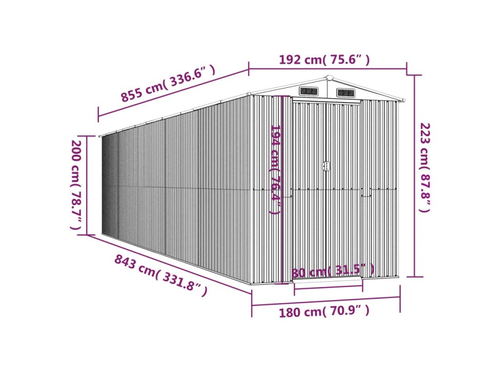 Zahradní kůlna světle šedá 192 x 855 x 223 cm pozinkovaná ocel 3147446