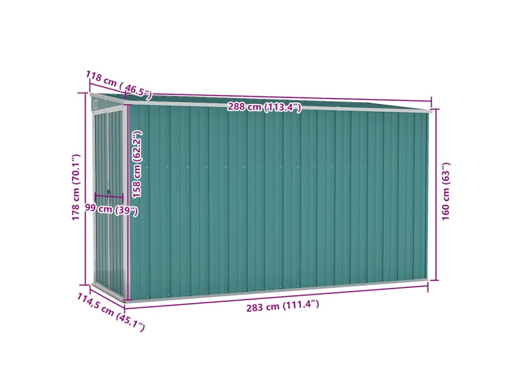 Zahradní kůlna zelená 118 x 288 x 178 cm pozinkovaná ocel 316225
