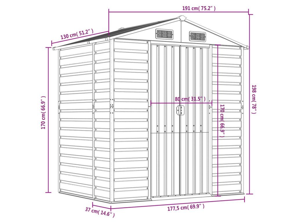 - Odolný materiál: Zahradní domek na nářadí je vyroben z pozinkované oceli, která zabraňuje korozi a vydrží dlouhodobé používání. Ocel je mimořádně tvrdý a pevný materiál. Nabízí robustnost a stabilitu. Galvanizace poskytuje lepší ochranu proti korozi a je užitečná pro výrobky, které budou používány venku i v náročném prostředí.