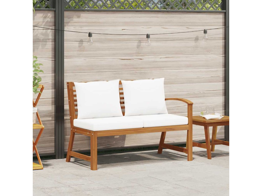 Zahradní lavice 114,5 cm s krémovou poduškou masivní akácie 311838