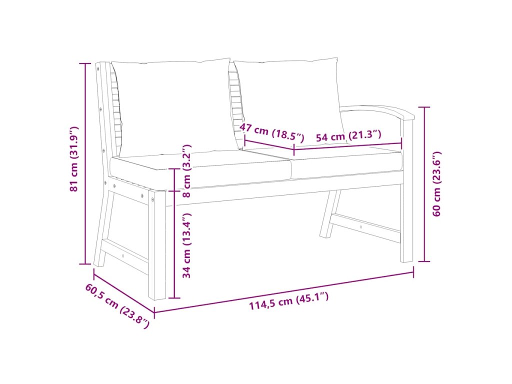 Lavička je vyrobená z vysoce kvalitní masivní akácie, tropického tvrdého dřeva s vysokou odolností vůči klimatickým vlivům a dlouhou životností. Dřevo je ošetřené olejem, které zahradní lavici propůjčuje teplou barvu a navíc se snadno čistí a udržuje. Balení obsahuje hustě polstrované podušky na sedák a opěradlo pro maximální pohodlí. Tento kus můžete kombinovat s dalšími produkty v našem obchodě a sestavit si vlastní sedací soupravu.