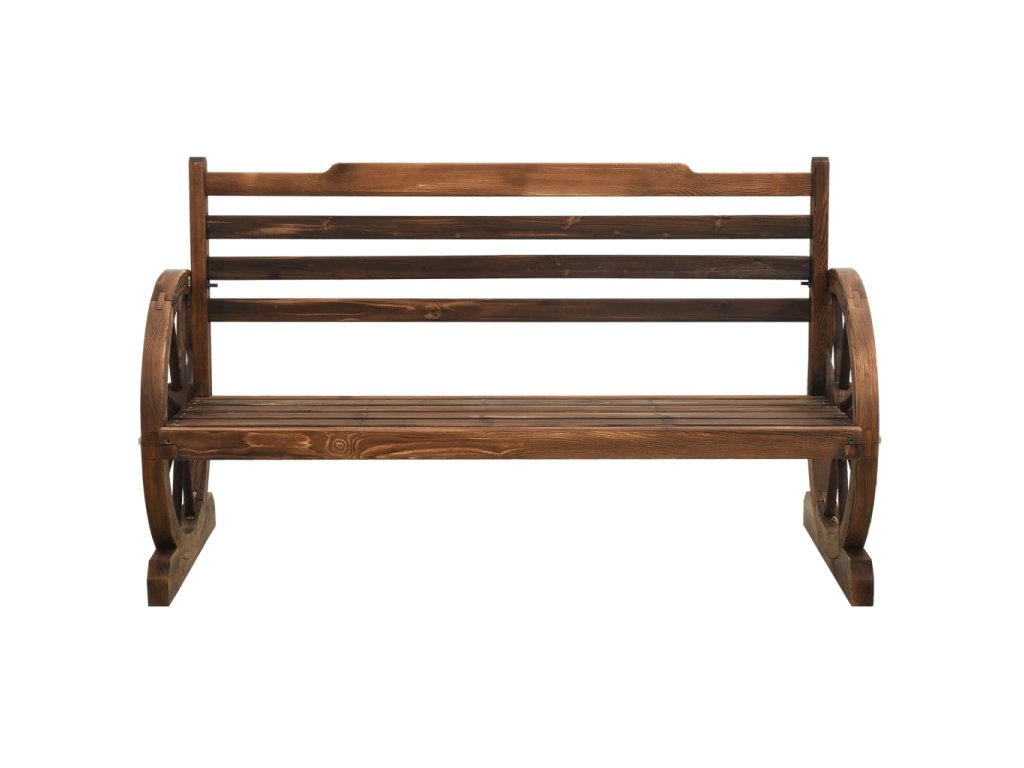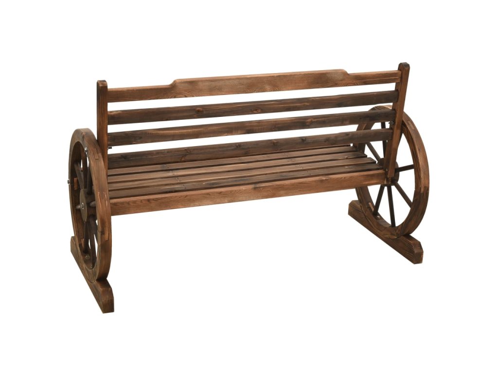 Tato lavice z masivního jedlového dřeva má jedinečný design ve stylu kol od povozu, a navíc představuje skvělou volbu pro relaxaci na zahradě nebo na terase.