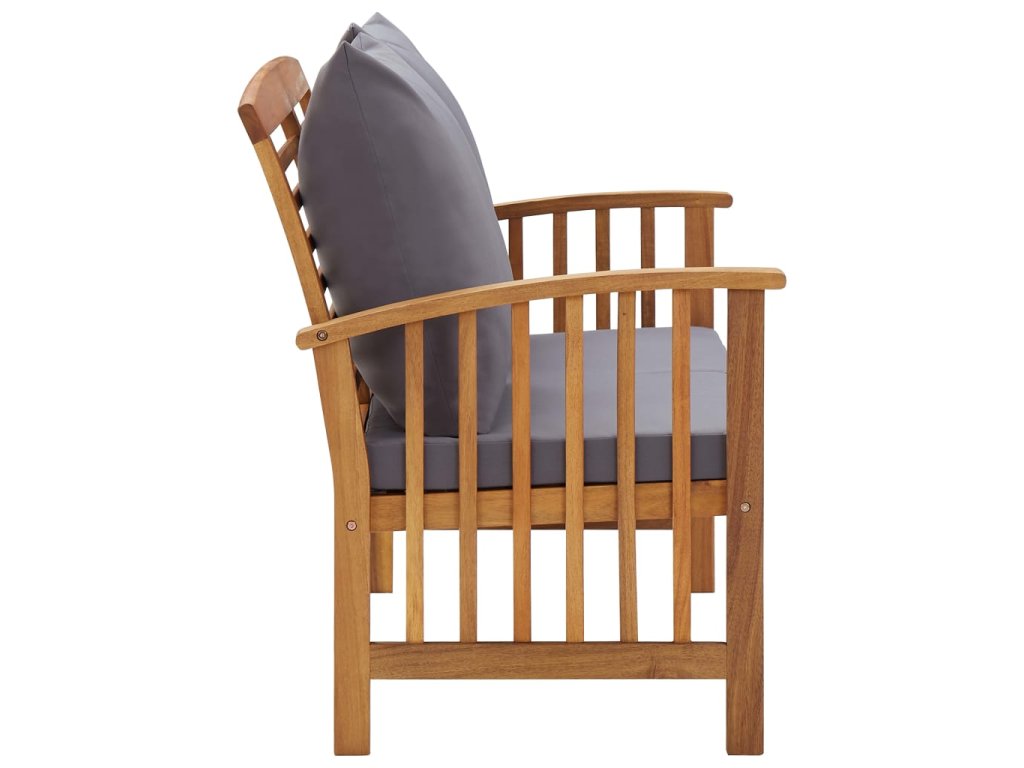 Zahradní lavice je vyrobená z masivního akáciového dřeva s olejovým povrchem, je stabilní a má dlouhou životnost. Řemeslné zpracování a krásná kresba dřeva dává každému kusu nábytku jeho charakteristický a neopakovatelný vzhled. Podušky na sedák a polštář za záda přispívají k pohodlnému posezení, stejně jako opěradlo a područky.