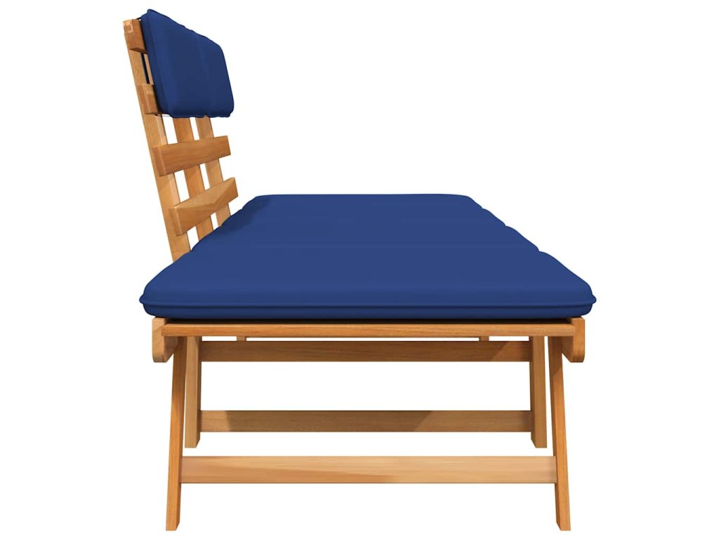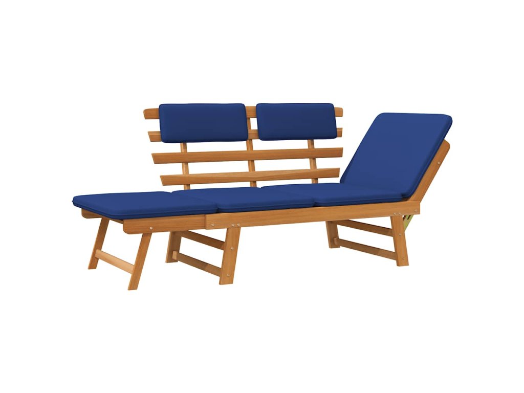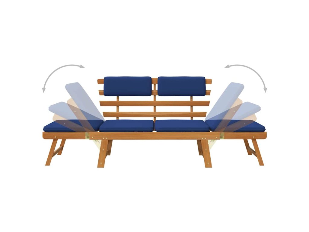 Lehátko má nastavitelné boky, takže ho snadno a rychle přeměníte z lavičky na denní postel a zase zpátky. Silné odnímatelné podušky na opěradlo a sedák poskytují pohodlí při sezení i ležení. Potahy podušek se dají snadno sejmout a vyprat. Lavička je vyrobená z masivní akácie, tvrdého dřeva s hustou kresbou. Toto dřevo je odolné vůči povětrnostním vlivům a vhodné pro venkovní použití.