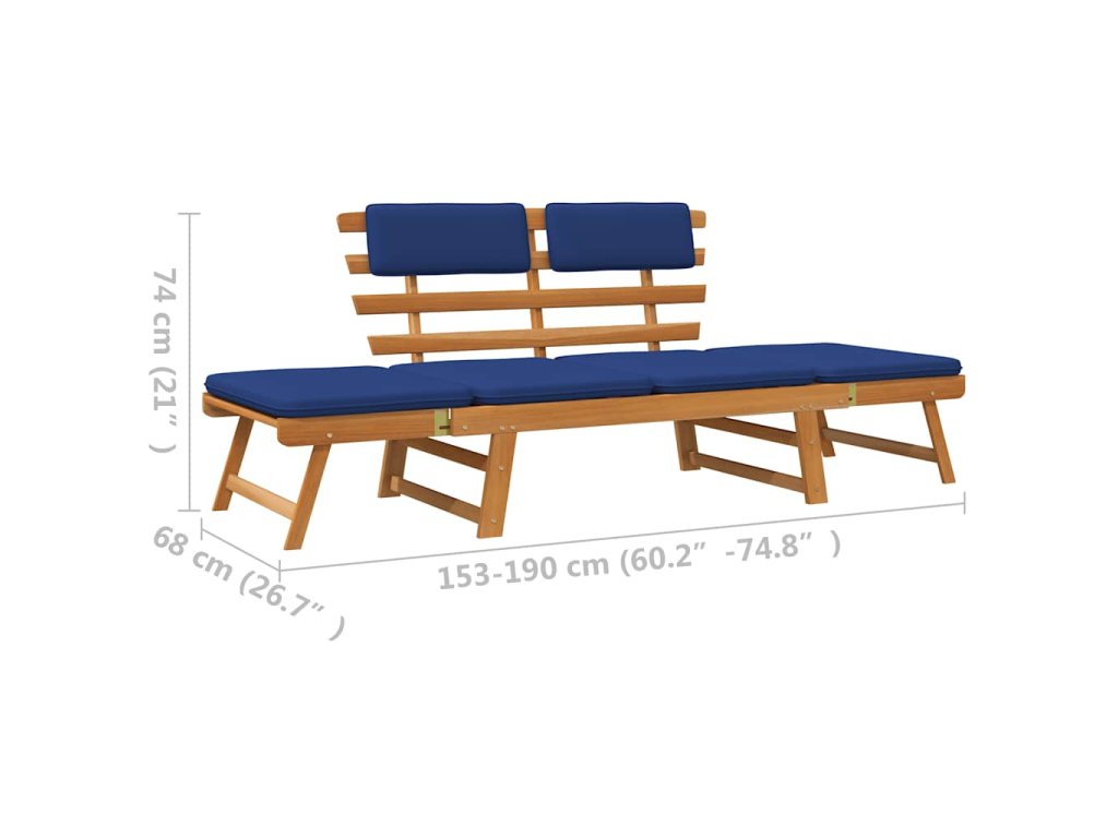 Zahradní lavice s poduškami 2-v-1 190 cm masivní akáciové dřevo 312120