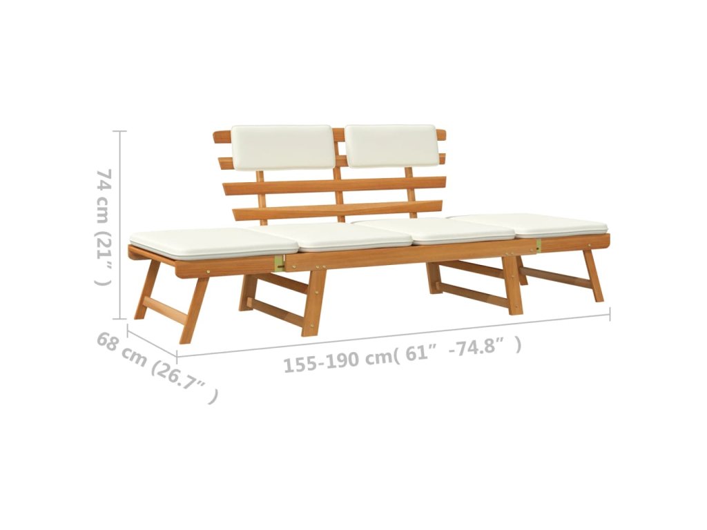 Zahradní lavice s poduškami 2 v 1 190 cm masivní akáciové dřevo 316832