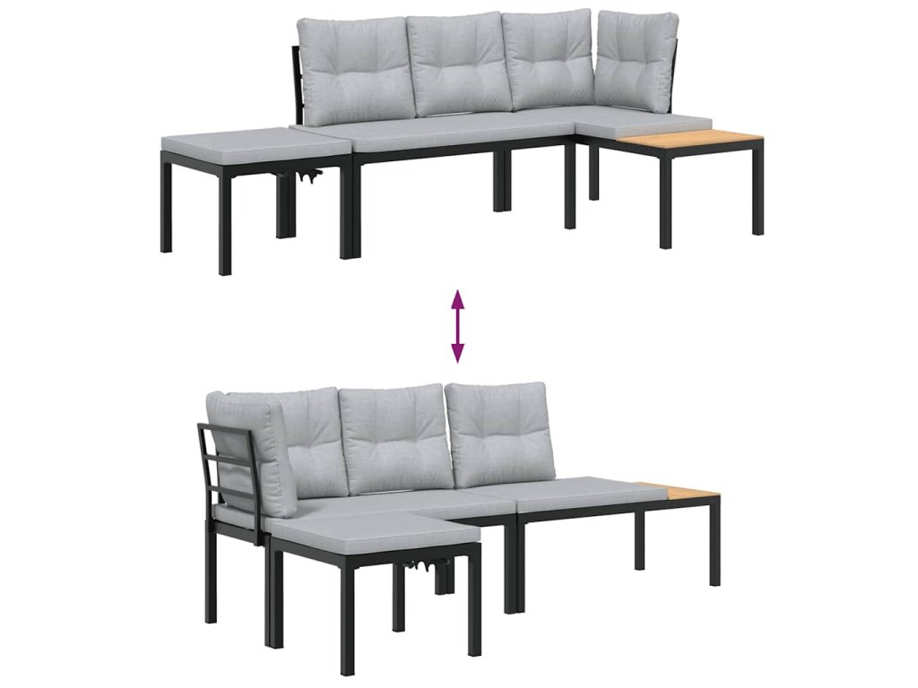 - Pohodlné sezení: Tento venkovní nábytek se silně polstrovanými poduškami a polštáři nabízí pohodlné sezení.