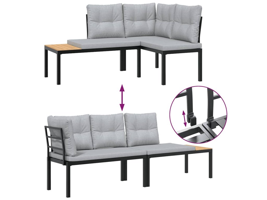 Zahradní lavice s poduškami 3 ks černé práškově lakovaná ocel 3283648