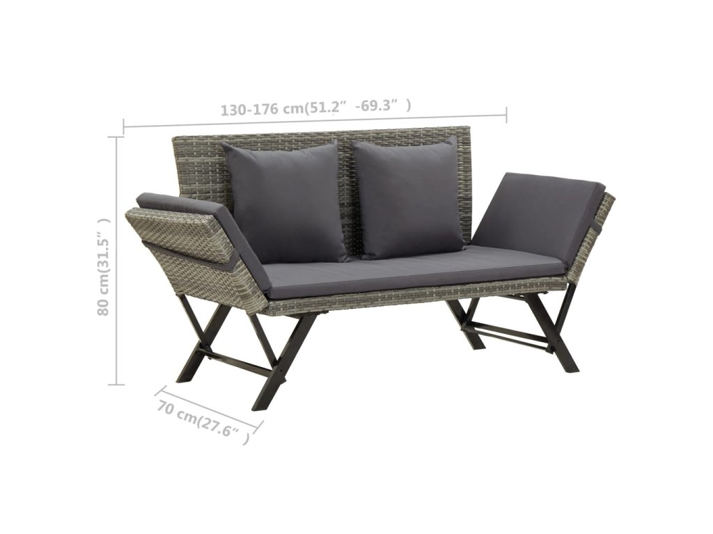 Zahradní lavice s poduškami šedá 176 cm polyratan 317183
