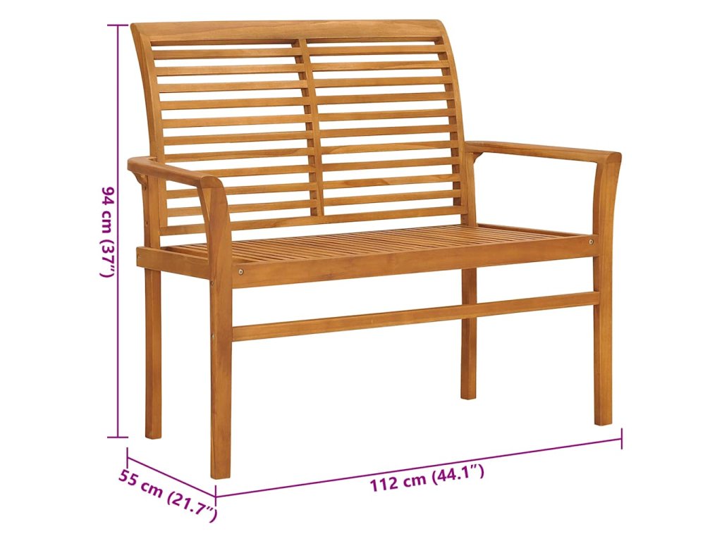 Zahradní lavice s vínovou poduškou 112 cm masivní teak 3062658