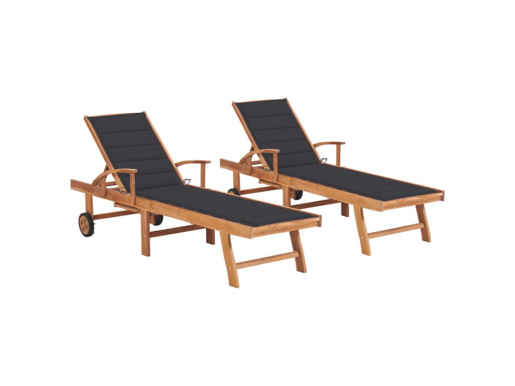 Zahradní lehátka 2 ks s antracitovou poduškou masivní teak 3073186