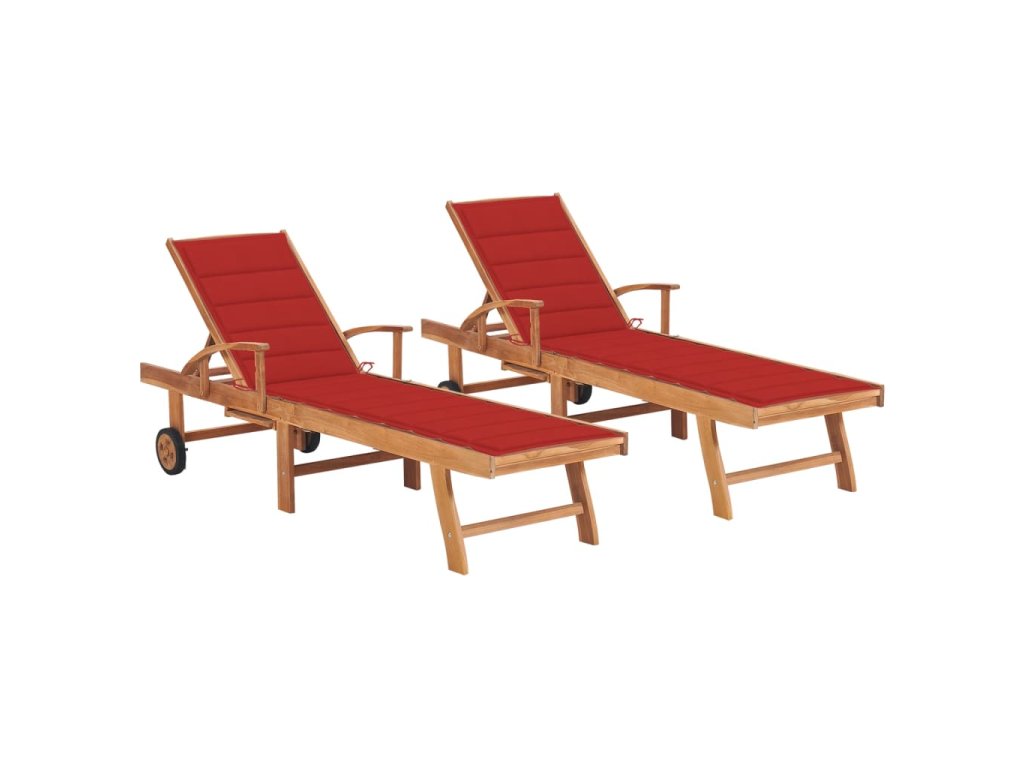Zahradní lehátka 2 ks s červenou poduškou masivní teak 3073192
