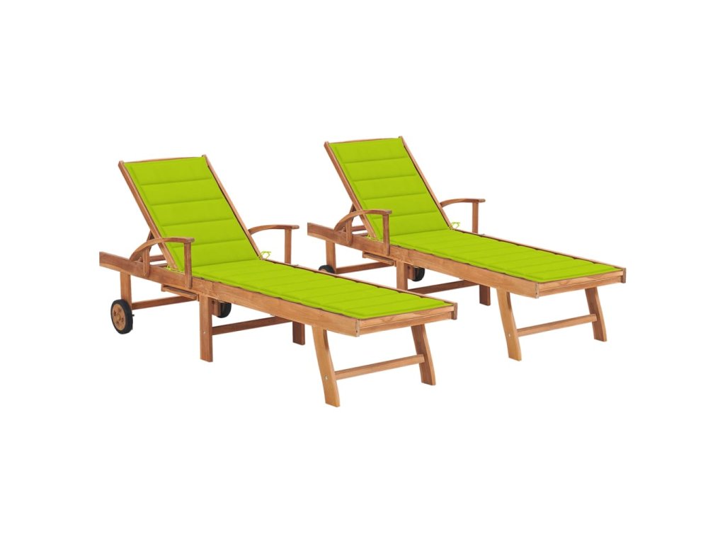 Zahradní lehátka 2 ks s jasně zelenou poduškou masivní teak 3073197
