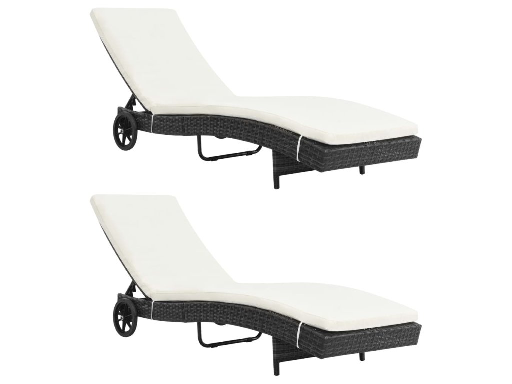 Zahradní lehátka 2 ks s kolečky a poduškami polyratan černá 3078465