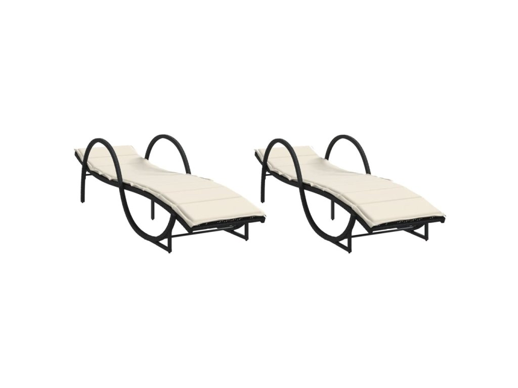 Zahradní lehátka 2 ks s poduškami černá polyratan 3277307
