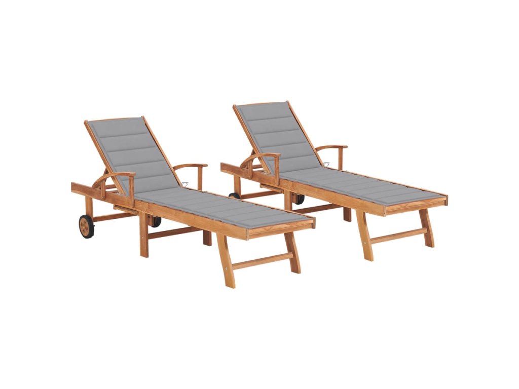 Zahradní lehátka 2 ks s šedou poduškou masivní teak 3073187