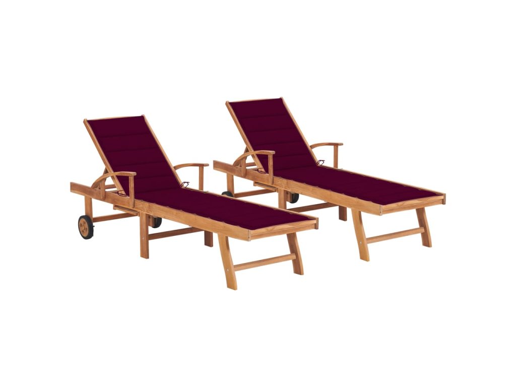 Zahradní lehátka 2 ks s vínovou poduškou masivní teak 3073195