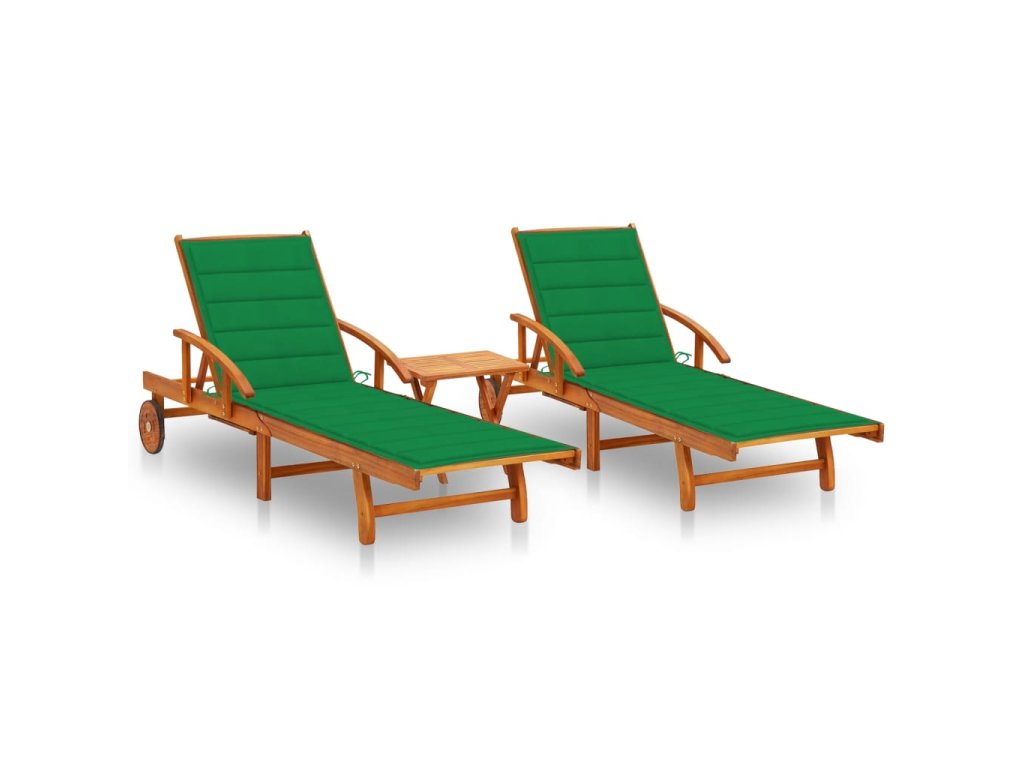 Zahradní lehátka 2 ks se stolkem a poduškami masivní akácie 3077350