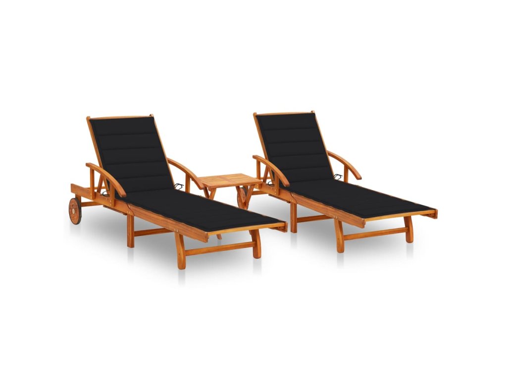 Zahradní lehátka 2 ks se stolkem a poduškami masivní akácie 3077352
